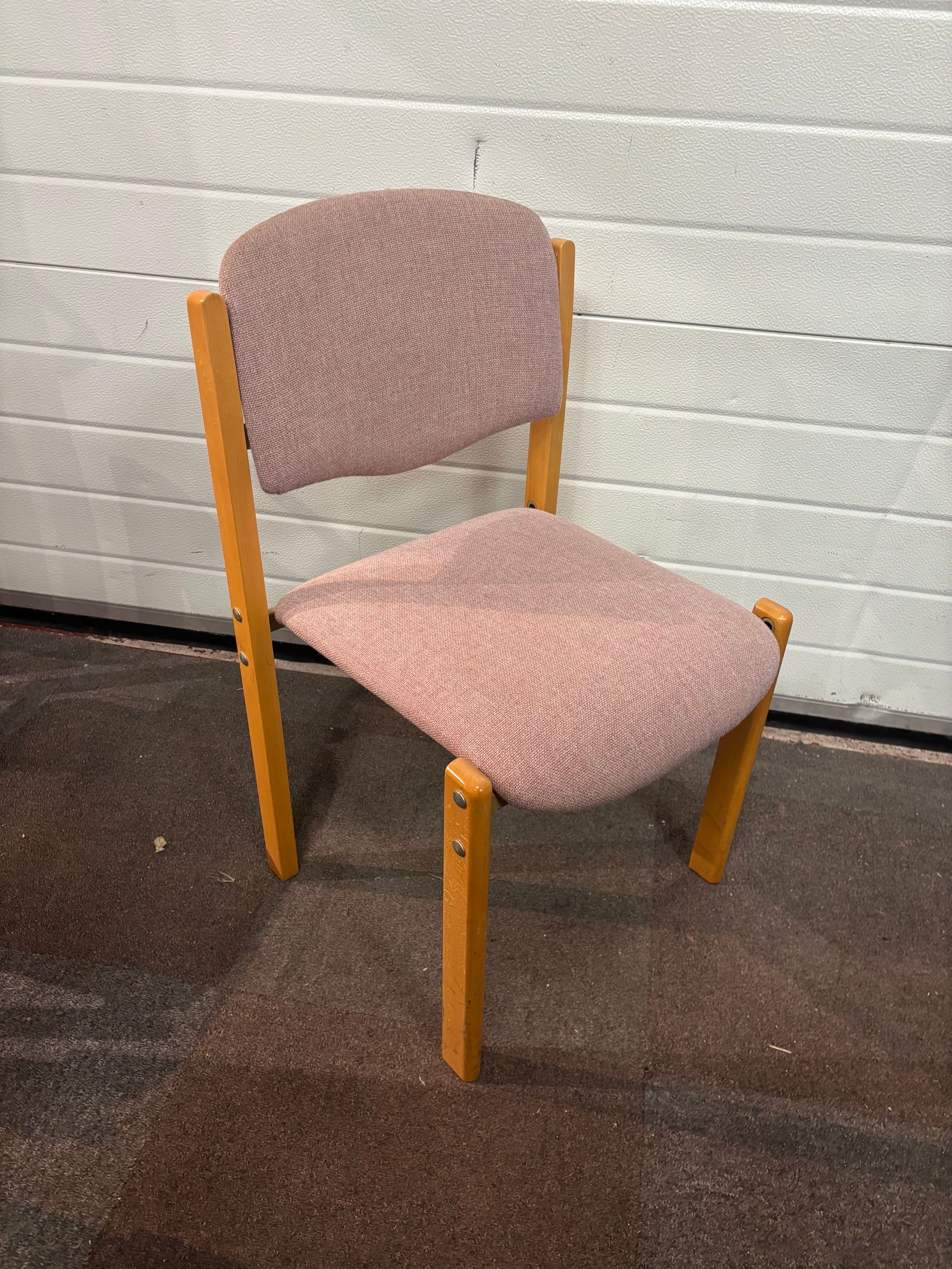 Meeting chairs in light pink with wooden frame and legs