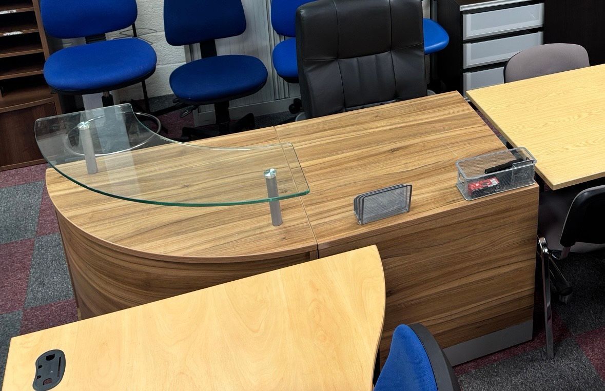 Reception Desk - Glass Raised Shelf - Dark Oak