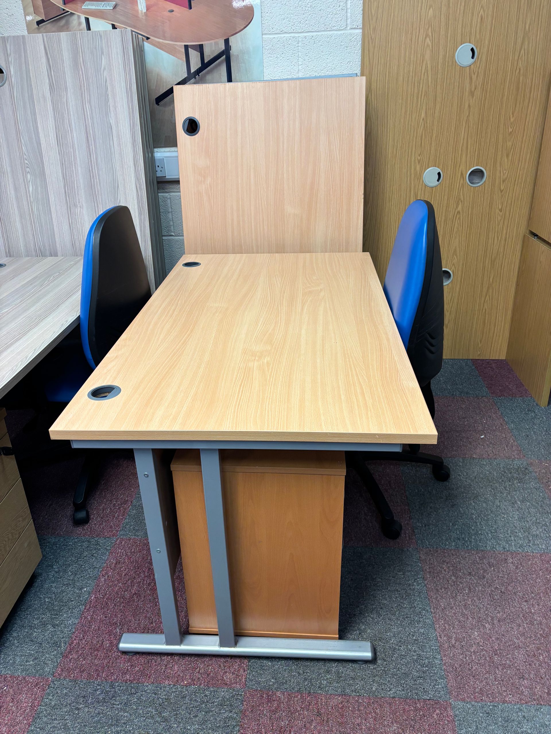 Beech straight 1400 mm Desk with cantilever frame in Silver