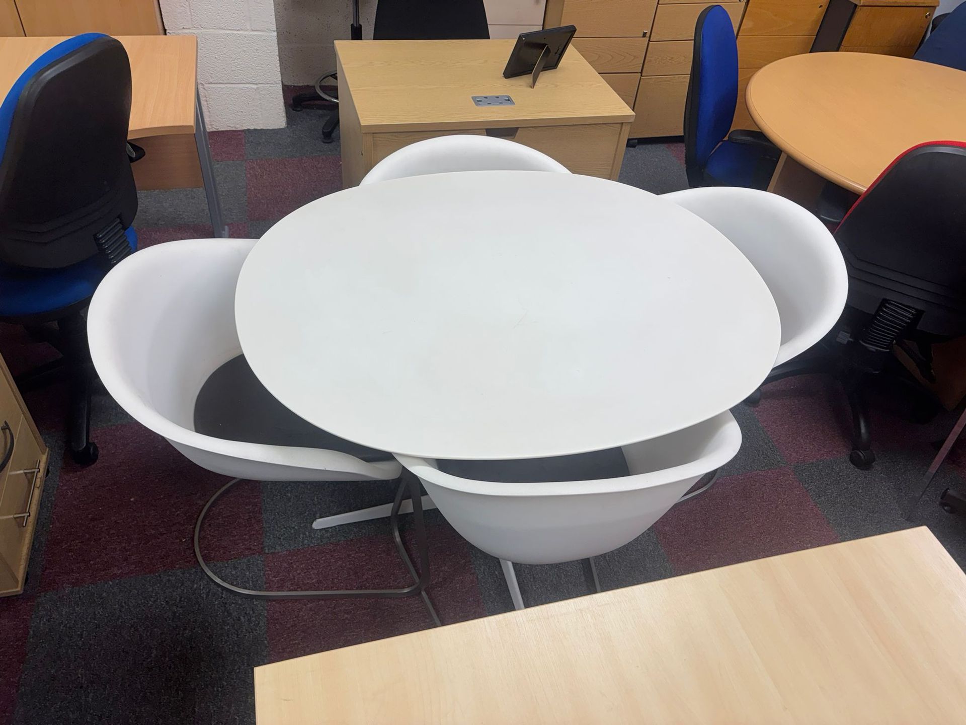 Used meeting table in white with matching chairs