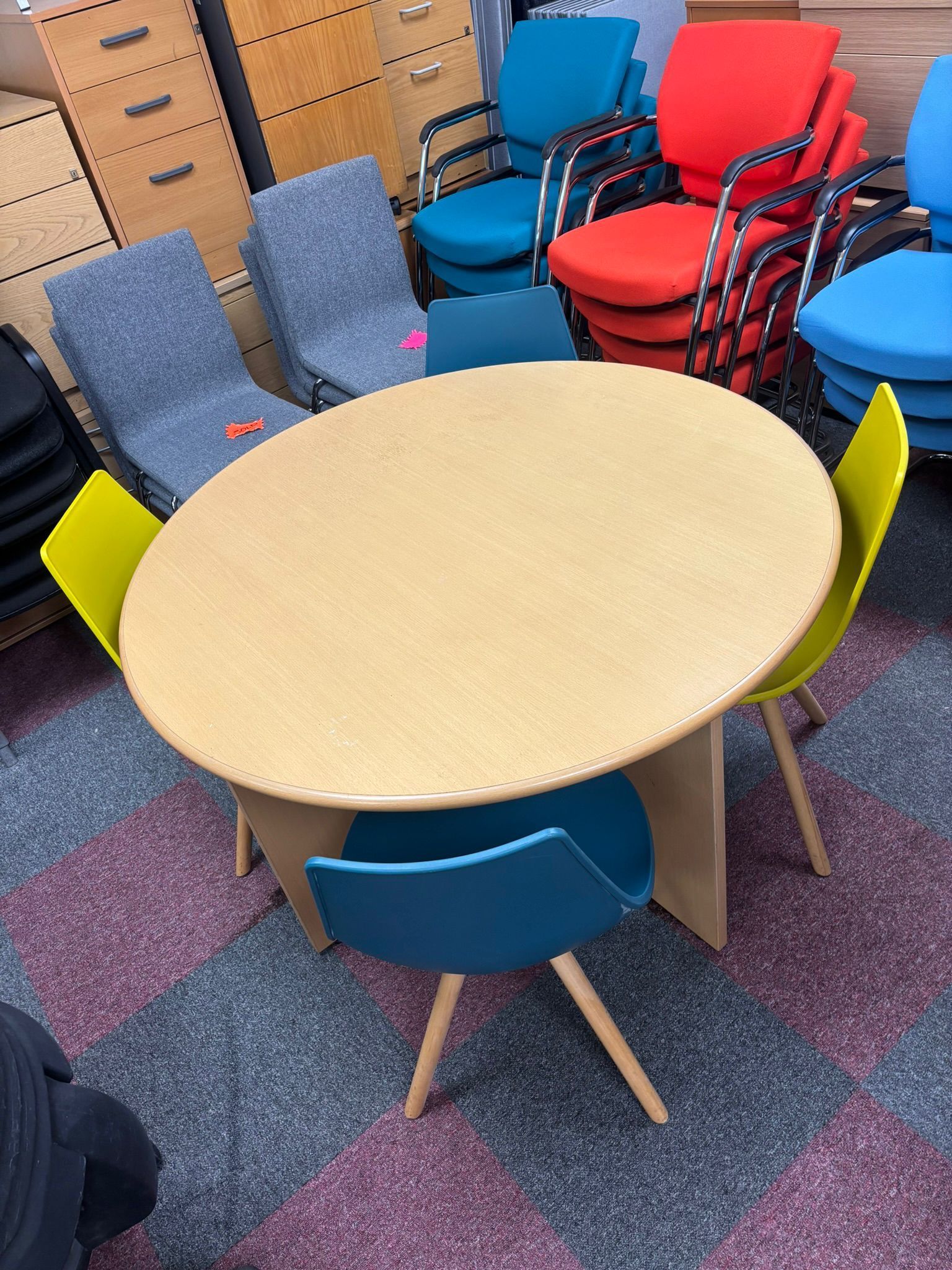 Used round meeting table with panelled legs